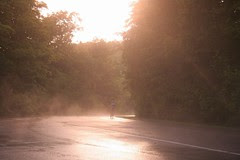 Did a little riding this weekend. I had originally thought I might head back to the Adirondacks to add another climb…. but when the alarm went at 4:30am I just didn’t have it in me to climb out of bed so I (quickly) decided that (after a little more sleep) I’d go for a ride instead. It was a little warm this weekend. The heat of summer has begun but it wasn’t too bad from a humidity standpoint so not too oppressive. Bugs were out in force. I stopped for a short break last week on an evening ride and was immediately mauled by mosquitoes and deerflies. As long as I was moving it was okay but there were no breaks after that. The photo is from an evening ride last week. We got hit with a short heavy rainfall but it passed by quickly. After I got to the car there was a lot of mist coming off the hot pavement and it made for a nice shot.